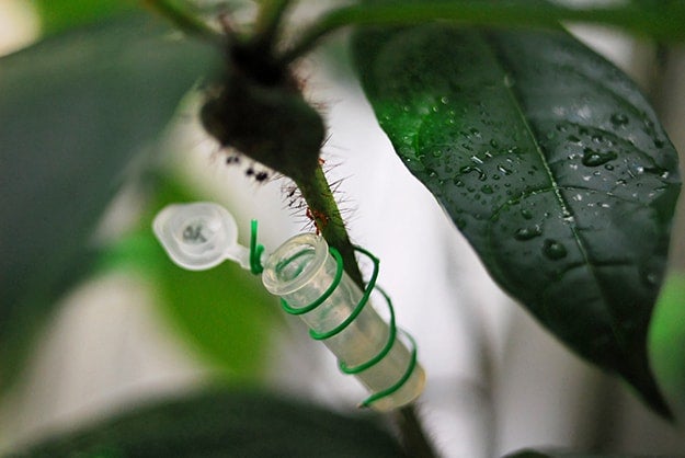 The researchers zeroed in on two genes of Allomerus octoarticulatus that regulate foraging behaviour, knowing that how an animal forages for food often determines how much benefit its plant partner receives. Working in the field in the Peruvian Amazon, they fed some colonies a chemical that increases the activity of the genes’ products, and observed how it changed ant behaviour. They then collected the ants and brought them back to Toronto for molecular analysis.