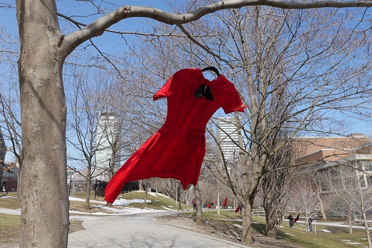OSIA visited Jaime Black's REDress art installation at U of T, which addresses missing and murdered Indigenous women across Turtle Island (photo by Hannah James)