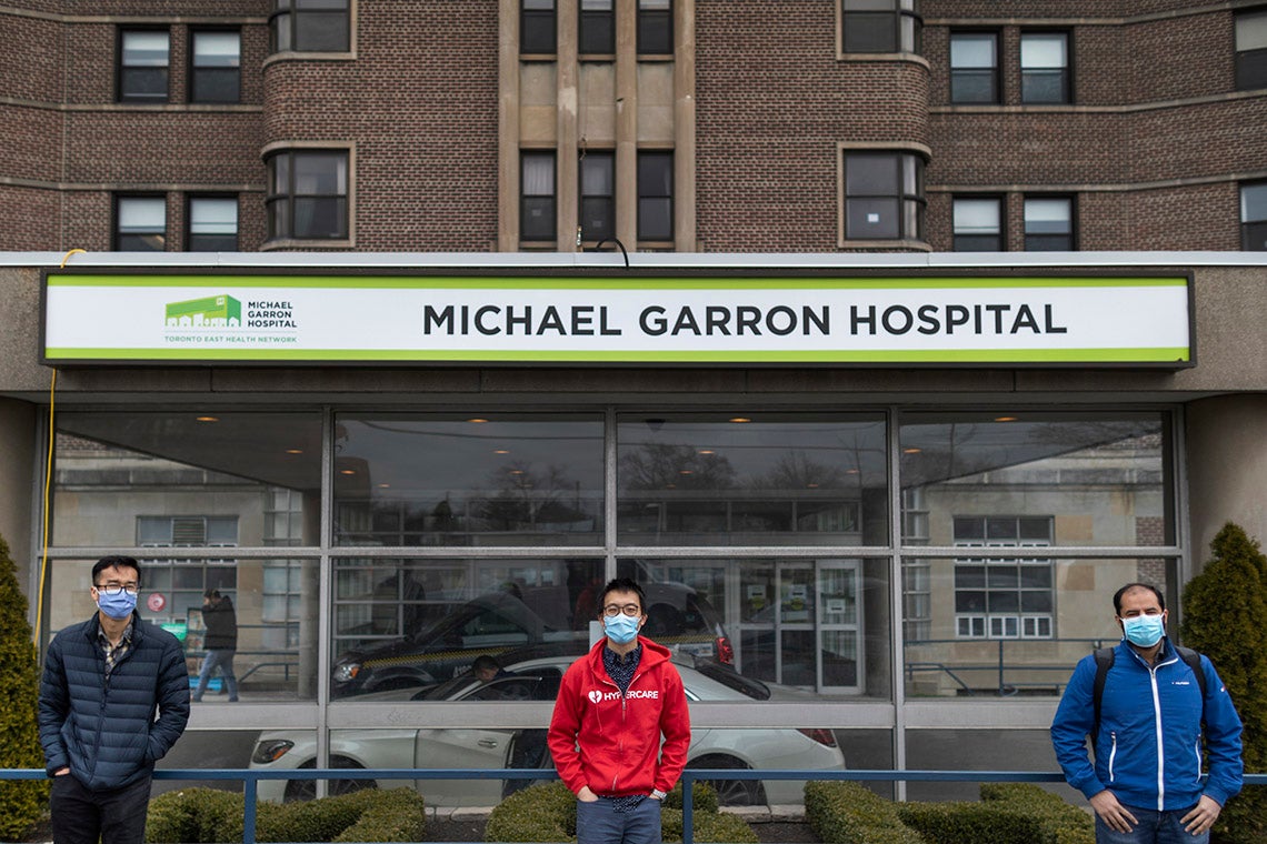 Hypercare’s founders at Toronto’s Michael Garron Hospital (from left to From left to right): Dr. Joseph Choi, Albert Tai and Umar Azhar (photo by Nick Iwanyshyn)