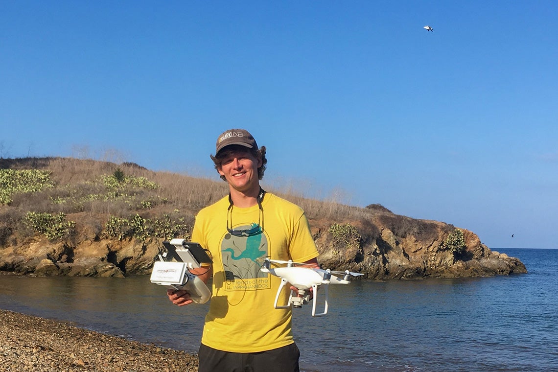 Shark Lab researcher Jack May used drones and underwater temperature loggers to collect the information the team of U of T researchers needed for their data analysis.