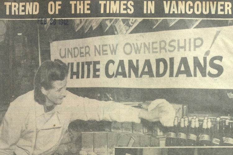 Zungri looked at newspaper clippings describing the expulsion of Japanese, German and Italian Canadians from the West Coast in 1942, as well as news photographs of white Canadians taking over Japanese-owned shops.