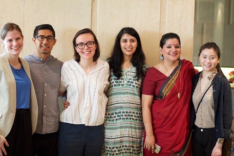 From left to right, students Kirstyn Koswin, Nikhil Pandey, Carol Drumm, Shruti Sardesai, the team's research assistant Sneha Banerjee and Cheryl Young in India