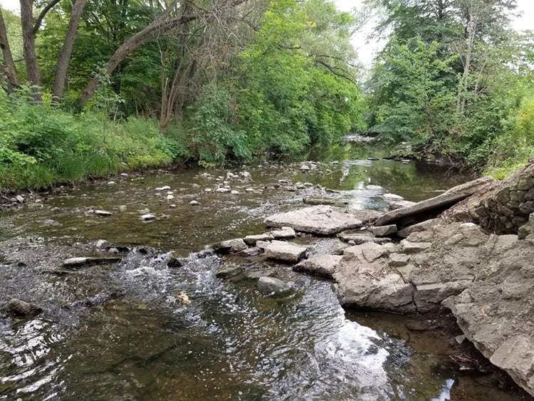 A location on Mimico Creek where U of T researchers sampled water to measure chloride from road salt (photo by Donald Jackson)