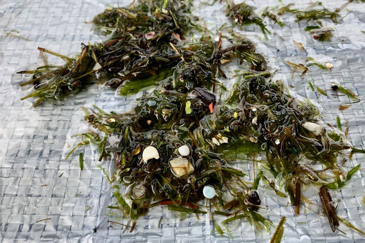 Small microplastic pieces entrained in macrophytes captured by the Seabins in the Outer Harbour Marina in summer 2020.