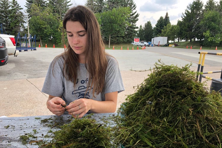 Cassy Sherlock quantifying and characterizing microplastics trapped in macrophytes captured in the Seabins at the Outer Harbour Marina in summer 2020.