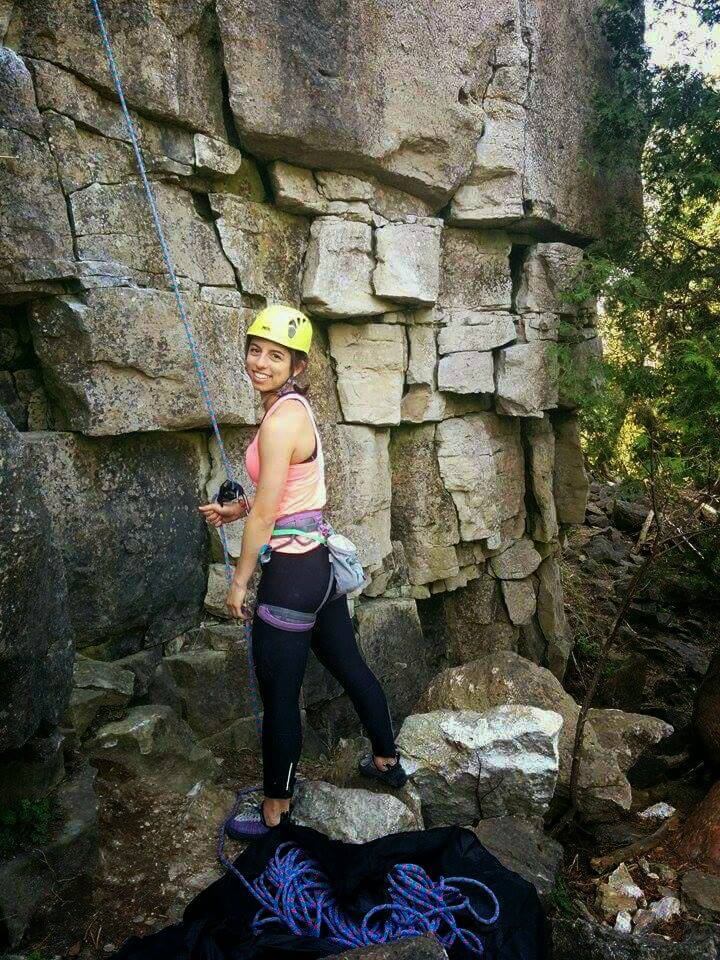 Stephanie Gaglione rock climbing in Milton, Ont.