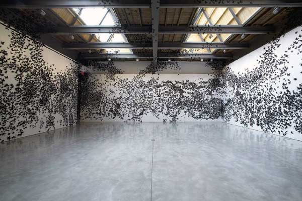 Works in the series include a 12-hour lava flow, a 75-person human glacier, floating and video projection installations, and a swarm of 30,000 black paper moths. The exhibit showcases a dozen artists and collectives, including Tim Knowles, whose work is also featured in the current Blackwood exhibit The Pen Moves Across the Earth, U of T professor Charles Stankievech, director of the visual studies program in the Daniels Faculty of Architecture, Landscape and Design, and Christof Migone, former director and curator of the Blackwood Gallery. UTM students in Shaw’s Visual Arts summer internship course assisted with development of the exhibition.