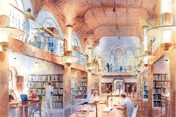 Long relegated to use for examinations and assembly on graduation day, these lofty interiors, much admired for their woodwork and windows, become centres of scholarship outfitted with contemporary technological accoutrements and facilities for individual and group study.