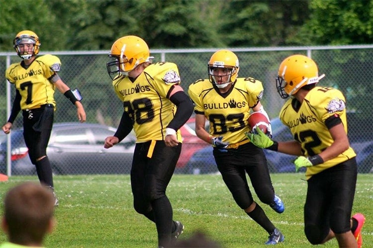 Griffin Assance-Goulais, No. 83, playing with the North Bay Bulldogs (photo courtesy of Griffin Assance-Goulais)
