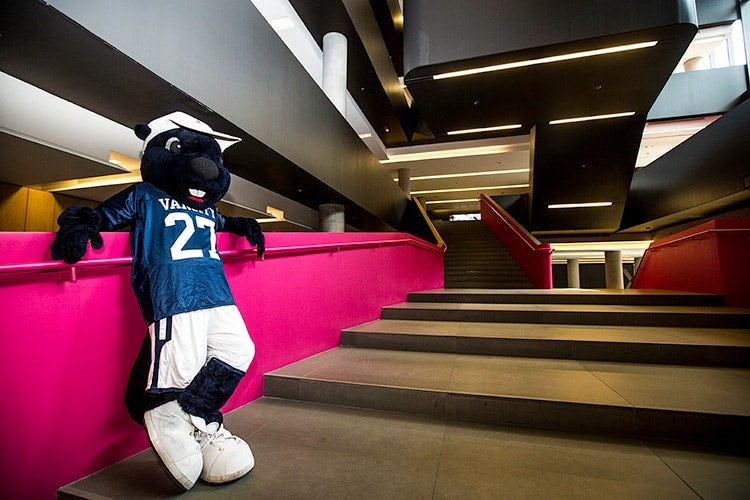 8. Looking to add a pop of colour and a more modern background to your post-grad photos? Then pop into Rotman for a photo on their fuschia-accented stairs.
