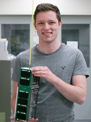 Keenan Burnett (right) was a founding member of the Space Systems division of the University of Toronto Aerospace Team (UTAT) and designed key components of HERON, the team’s entry in the Canadian Satellite Design Challenge.