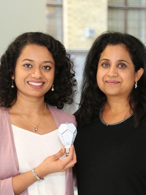PhD student Pirathayini Srikantha (at left, with supervisor Professor Deepa Kundur) studied how electrical grids can better accommodate renewable sources like wind and solar, which generate power intermittently and sometimes unpredictably.