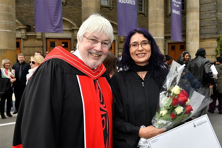 Julie Blair (right) with OISE dean Glen Jones (left) at fall convocation (photo by Gary Beechey, BDS Studios)