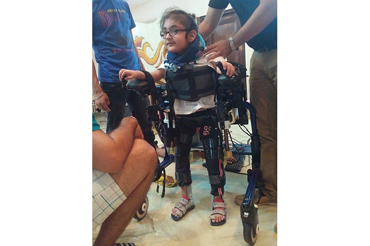 Manmeet Maggu's nephew Praneit takes Trexo Robotics's exoskeleton for a test drive in India