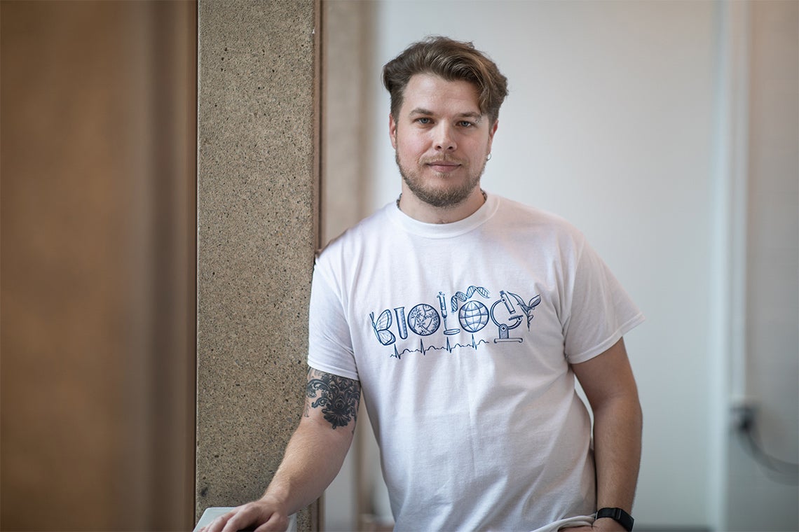 James Santangelo, a PhD student in biology at U of T Mississauga, co-led the study, which analyzed data about the white clover plant that was collected by 287 scientists in 160 cities across 26 countries (photo by Nick Iwanyshyn)