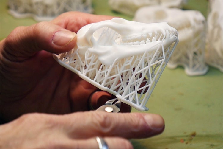 It took 20 minutes to remove each skull from the build platform and clean it (photo by Dave Mazierski)