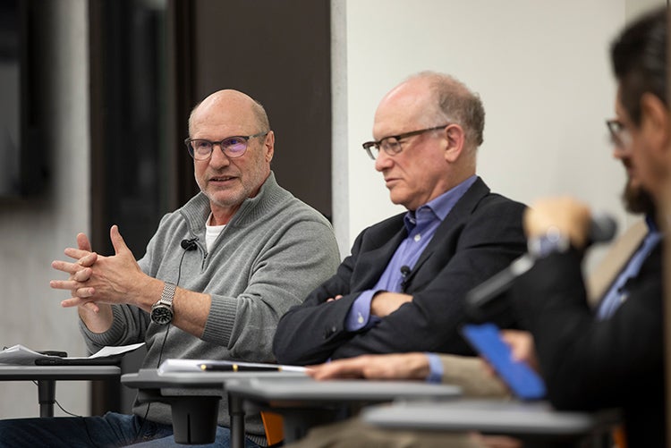 Researchers at U of T are known the world over for their prowess in artificial intelligence. But what will an AI-driven future look like and when will it become reality? Panelists Mark Fox (left), a professor of urban systems engineering, David Wolfe, a political science professor and co-director of the Innovation Policy Lab at the Munk School of Global Affairs & Public Policy, and Peter Wittek, an assistant professor at Rotman and affiliate of the Vector Institute, debated the issues with moderator Mario Grech, co-director and co-founder of the Department of Computer Science Innovation Lab, or DCSIL. If there was any consensus, it appeared to be that the future of AI will be what we make of it. “Will we let the technology run away with itself like social media has?” asked Wolfe.