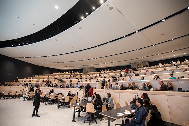 U of T held 10 lectures in the Myhal Centre for Engineering Innovation & Entrepreneurship, starting at 6 p.m. and ending before 11. Among other topics, visitors received a crash course on what the humanities can contribute to the fight against climate change, how the forces of chance affect one's life and when we can expect robots to begin taking care of us.
