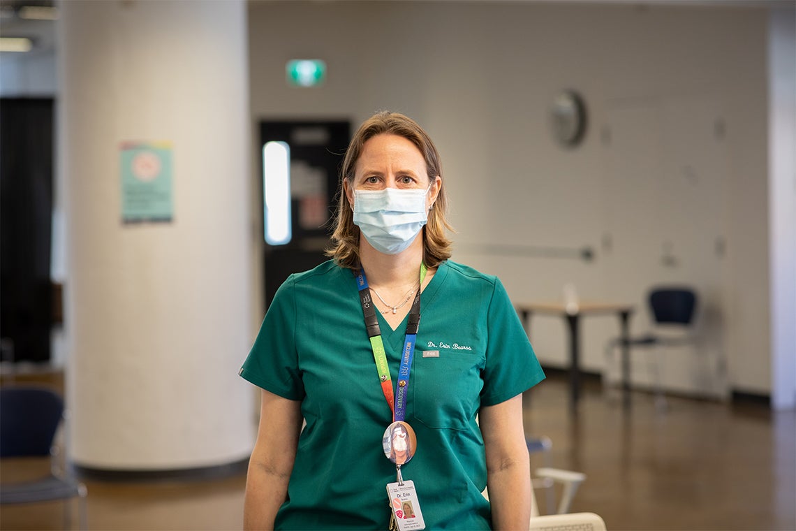 Erin Bearss, of the Temerty Faculty of Medicine and Mount Sinai Hospital, says it was “all hands on deck” to turn the U of T exam facility into a vaccine site in just a few weeks (photo by Johnny Guatto)
