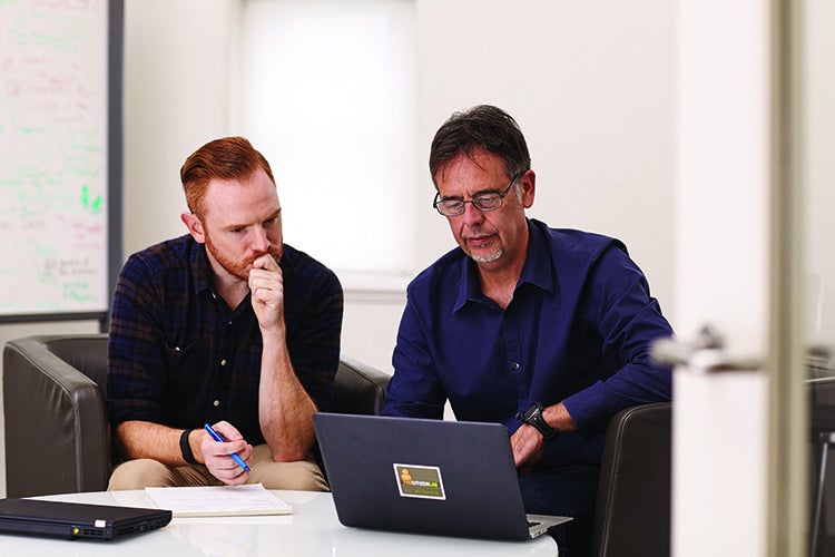 Professor Ron Deibert (left) and Citizen Lab researcher Adam Senft (photo by Riley Stewart)