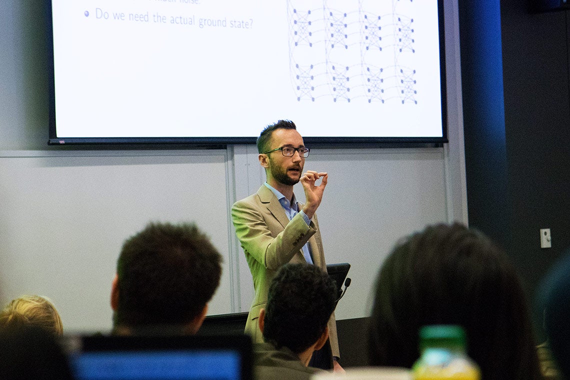 Scott Genin is the head of materials discovery at U of T startup OTI Lumionics, which was founded back in 2011. He explained to the audience how the startup is trying to use quantum algorithms to discover advanced materials for next-generation OLED (organic light emitting diode) screens in the fraction of the time it currently takes.