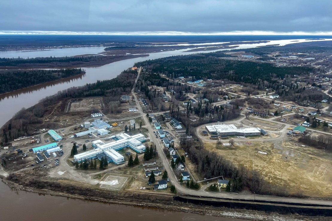 The Weeneebayko Area Health Authority operates the Weeneebayko General Hospital in Moose Factory, Ont., the large, multi-winged building in the foreground (photo by Anne Simard)