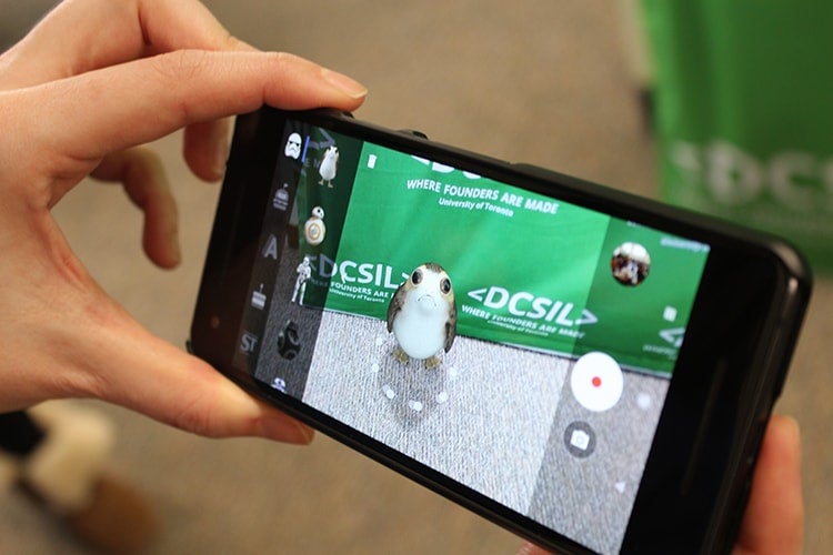 Disney’s Star Wars “porg” visits the Department of Computer Science Innovation Lab via the Google AR stickers app (photo by Ryan Perez)