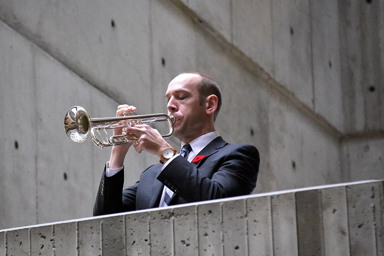 A trumpeter at a Remembrance Day ceremony in 2015 (photo by Ken Jones)