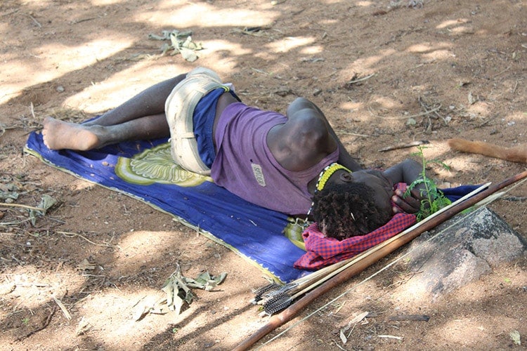 Although most human sleep research to date has taken place in laboratories under artificial conditions, Samson and his colleagues took their equipment and tests to rural Tanzania, where the hunter-gatherer Hadza tribe “lives in the same savannah grasslands that our ancestors had to overcome to adapt,” Samson says. With very little – if any – aid from industrially-produced equipment or tools, the Hadza hunt and gather on foot using bows, digging sticks and axes.