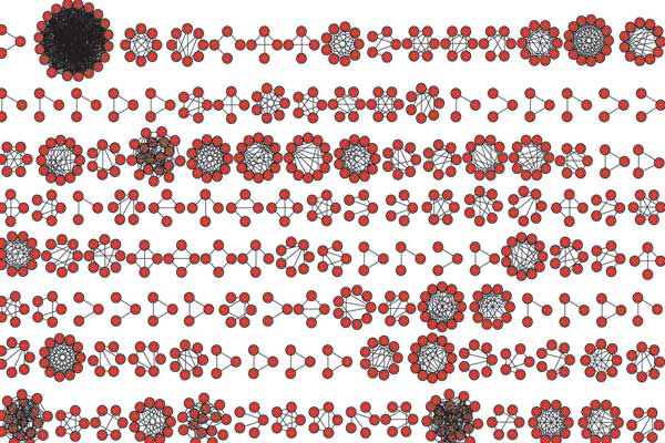 This is where Emili and Marcotte’s map comes in. Using a state-of-the-art method developed by the groups, the researchers were able to fish thousands of protein machineries out of cells and count individual proteins they are made of. They then built a network that, similar to social networks, offers clues into protein function based on which other proteins they hang out with. For example, a new and unstudied protein, whose role we don’t yet know, is likely to be involved in fixing damage in a cell if it sticks to cell’s known “handymen” proteins.