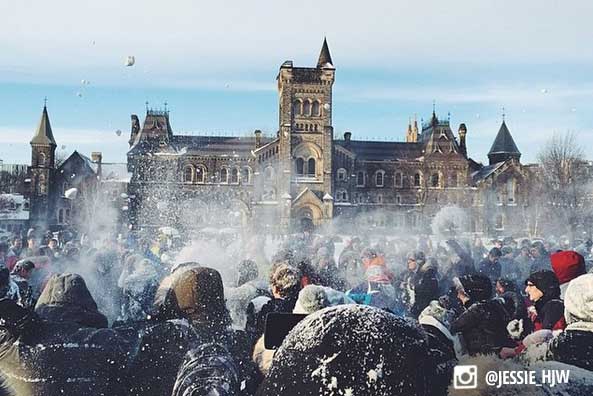 #UofT students let off steam by having an epic tri-campus snowball fight on Front Campus yesterday! Were you there? Photo by @jessie_hjw