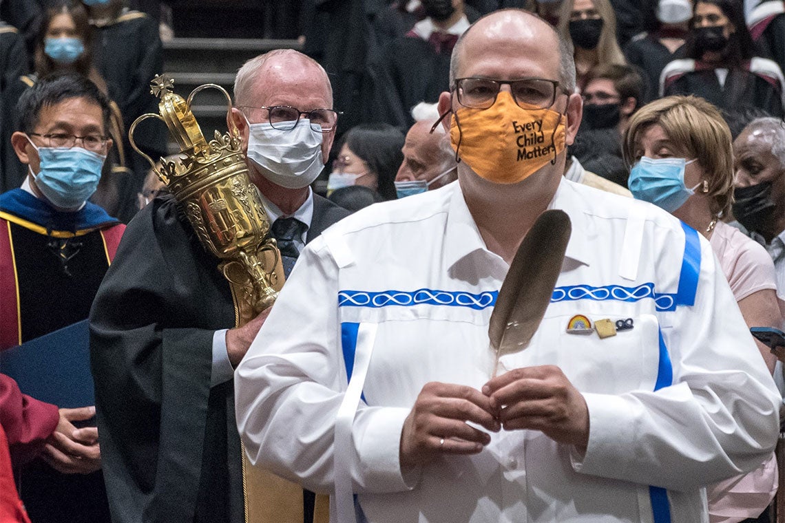The chancellor’s procession at the University of Toronto’s fall convocation ceremonies will once again be led by the Eagle Feather Bearer – a ceremonial role first adopted in the spring as a symbol of the university’s enduring partnership with Indigenous Peoples.